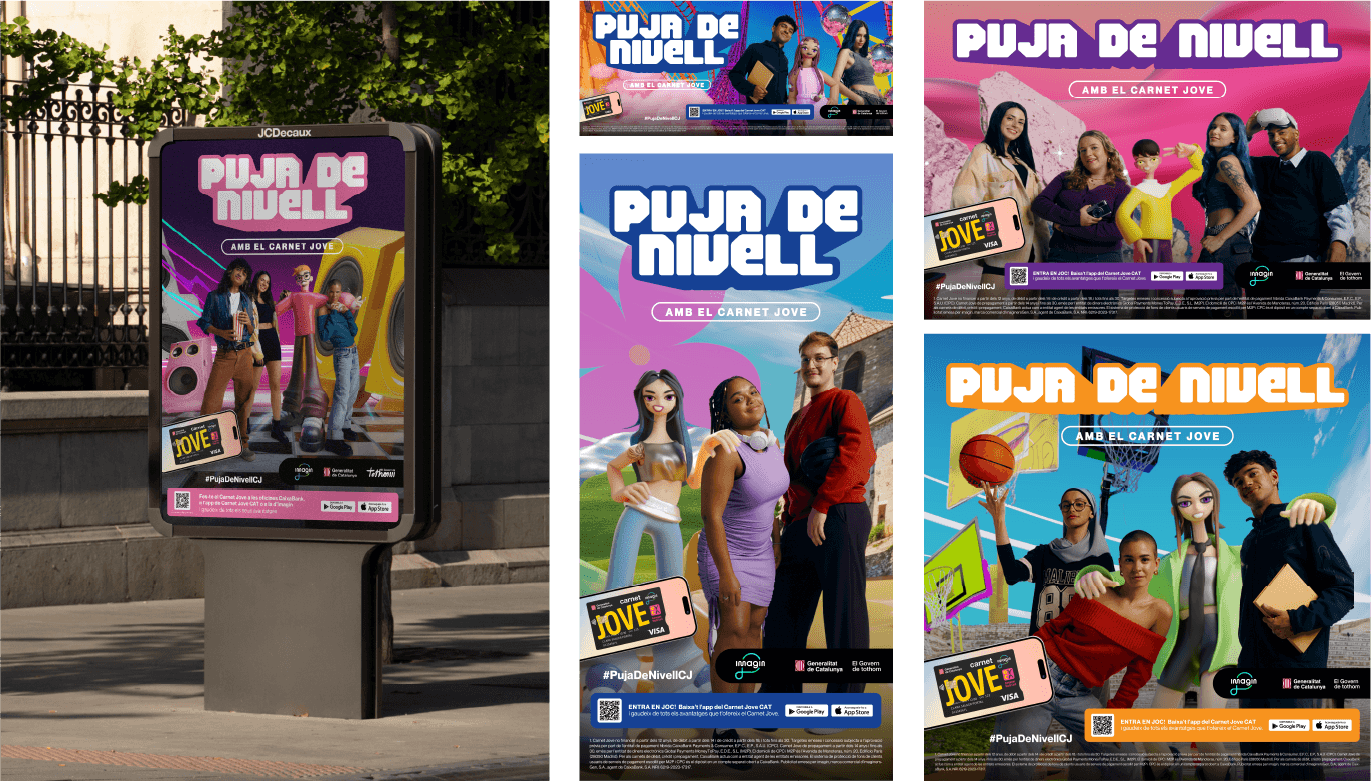 Con el concepto “Puja de Nivell”, queríamos transmitir que el Carnet Jove no es solo una tarjeta, sino una clave para desbloquear nuevas experiencias, actividades gratuitas, oportunidades para crecer y descubrir todo el que los espera en Cataluña y Europa.