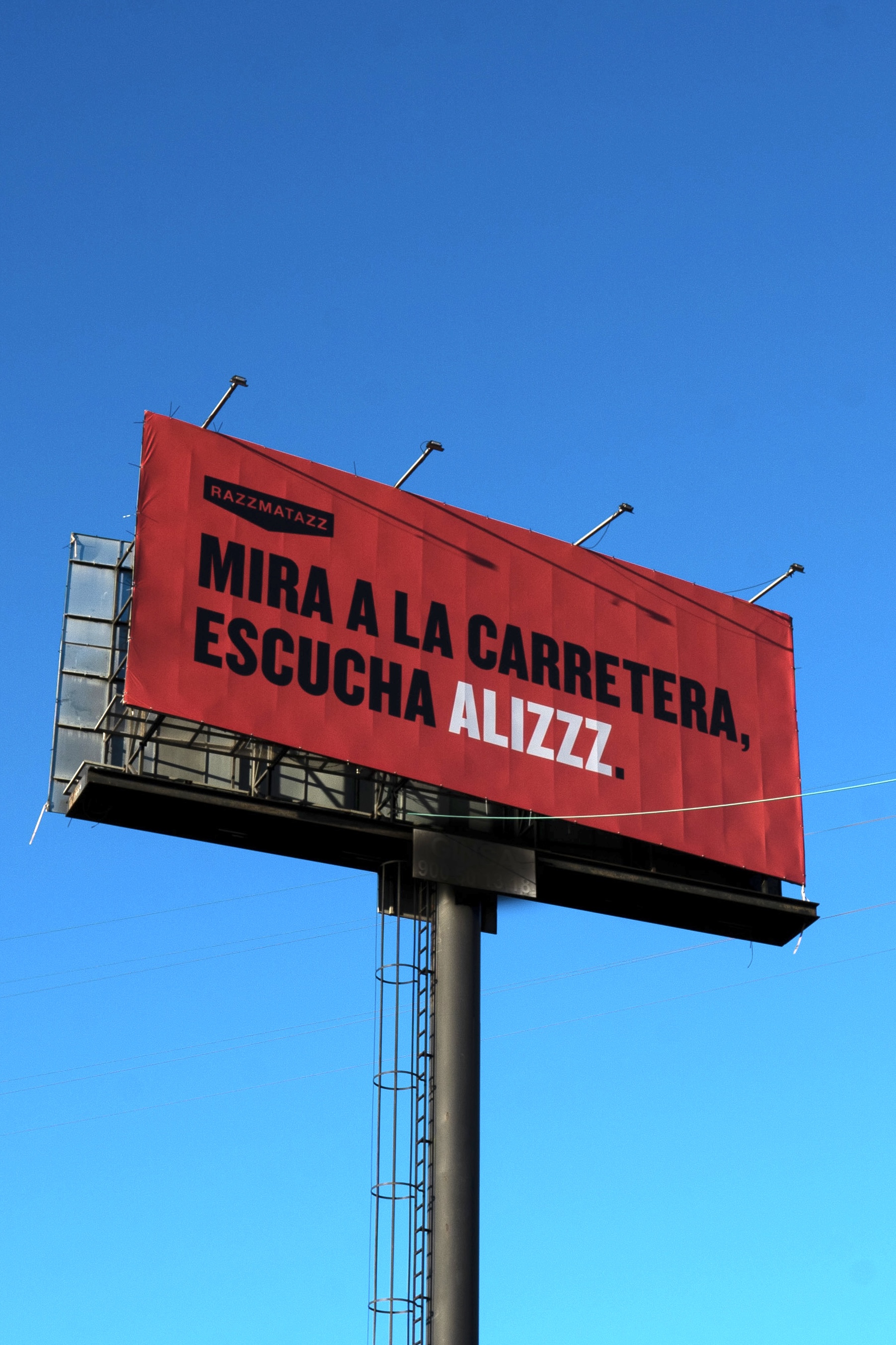 ?: Acción enmarcada dentro de la campaña de lanzamiento del álbum “Conducción Temeraria” de ALIZZZ. La propuesta pasaba por colocar un mensaje en una valla publicitaria con un titular que tuviera reminiscencias a la DGT, pero que a la vez invitara a escuchar al artista.